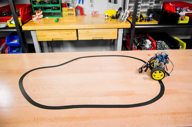 Con el fin de divertirse un poco más con mi Makeblock mBot en modo de seguidor de línea, he creado este mapa personalizado con un puente de cartón.Realmente es bastante simple hacer un mapa para un robot seguidor de línea. Lo que te voy a mostrar aqu