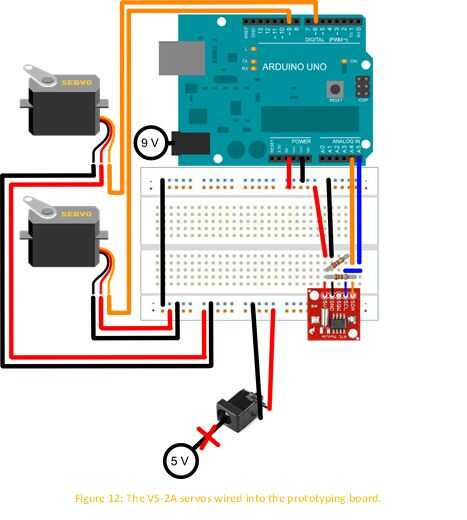 Conecte los servos como se muestra, dejando el poder desconecta el DC jack. (Figura 12)