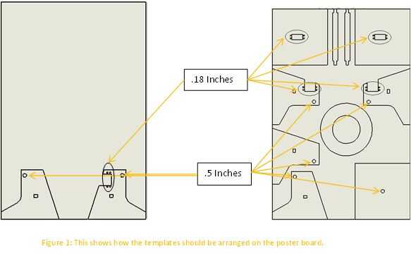 Garantizar las plantillas a la cartulina como se muestra en la figura 1 y utilizando las líneas centrales como guía, taladre los orificios de 18 pulgadas y 5 pulgadas.