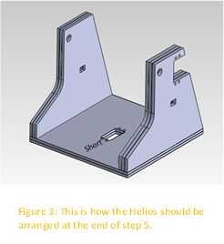 Usando el gel de pegamento, pega las partes 1, 2 y 3 juntos como se muestra en la figura 3. Asegúrese de que las partes están dispuestas para que la. 5" agujeros de diámetro son las más cercanos a la sección de la base que es corto, también Asegúrese de que la plantilla de la base esté mirando hacia abajo/hacia fuera. Deje que el pegamento fijar durante cinco minutos. Después de que el pegamento ha fijado, introduzca 3 clavos a través de la base y en cada una de las columnas para mayor apoyo.
