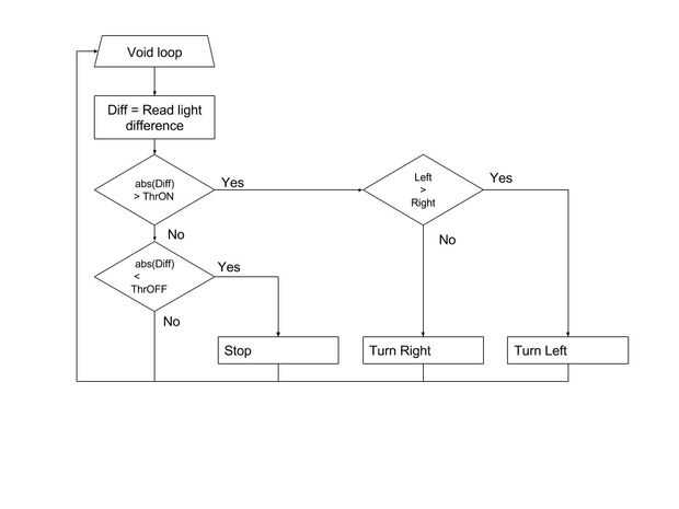 El algoritmo de control del motor es responsable de encender los motores y apagar. Todo esto dependiendo de los datos del sensor de luz.