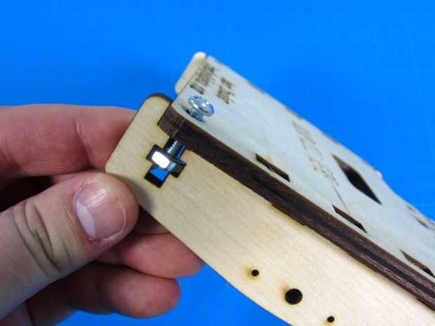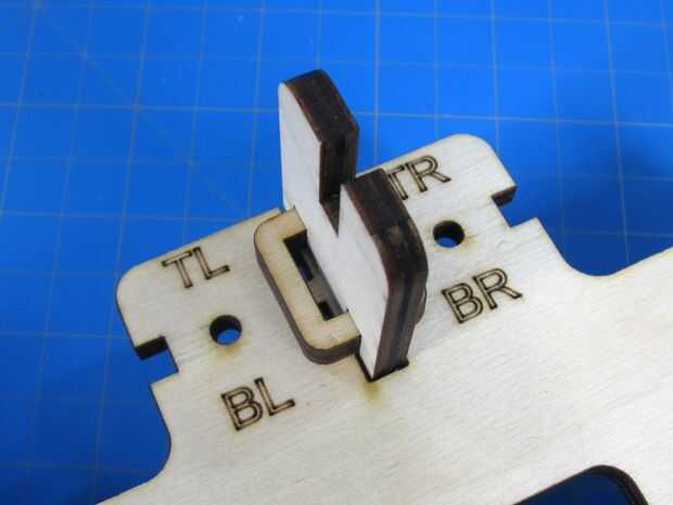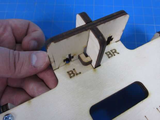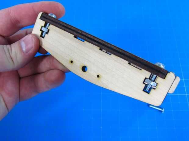 Ahora utilice las tres piezas restantes para crear el divisor del sensor. Redondos cuadrado primero, luego la pieza flaca alto y por último la pieza más larga con las ranuras del dos tornillo T. Una vez todos junto utilice dos tornillos y tuercas para sujetarla.