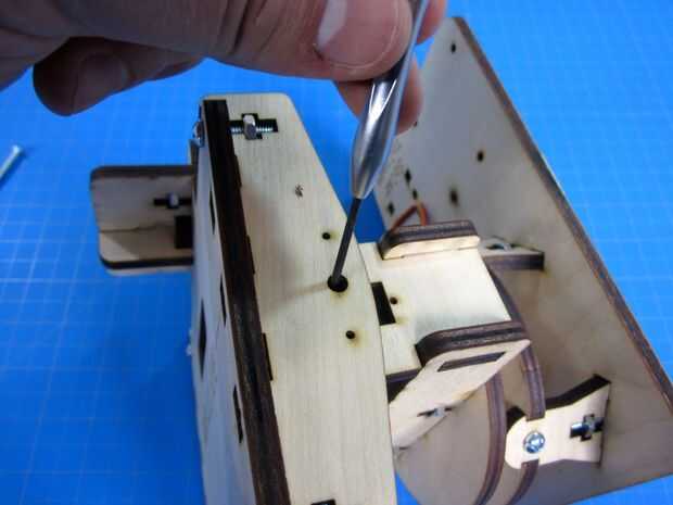 Utilice el final pequeño Servo máquina de tornillo para conectar la parte superior al Centro.