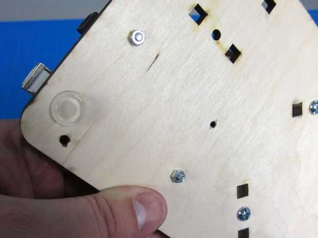 Atornille el Arduino utilizando al menos 2 de los M3 tornillos y tuercas. Puede utilizar los 4 si lo desea, pero uno en frente y uno en la parte posterior debe hacerlo.