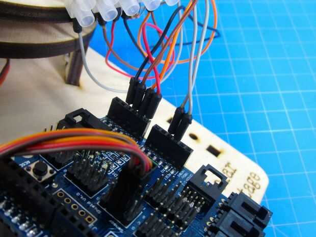 Coloque los Servos en su Arduino. Esto es fácil de hacer a través de muchas filas de perno interno del escudo.