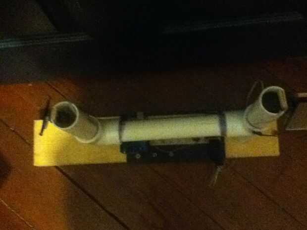 Usé 1" tubería de PVC y un 2 x 4 para mi marco. La 2 x 4 es 18" de largo con un poco más grande que corte un orificio de 1" 2" de un lado. Entonces utilicé imprimación de PVC y cemento para hacer mi "4" de PVC. Aquí están las dimensiones de las piezas.
