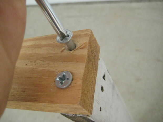 Wood4 con wood2 de línea como se muestra en la imagen.  Atornillar las piezas.  Repita con la otra pieza de wood4 en el otro extremo de wood2.