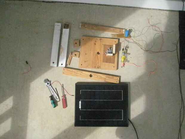 1 1/2" tabla de madera gruesa, misma longitud aprox., ancho del panel solar (en adelante, esta obra se llamará"wood1")