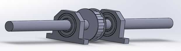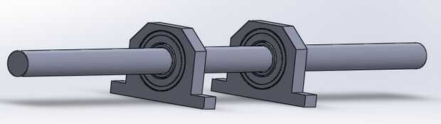 El par de rodamientos facilitara su funcionamiento, los cuales estarán en la parte superior del cilindro. Para esto se emplearan un par de alineamiento se mantendrán fijas a la base. El uso de las alineamiento permite asentar los rodamientos de bolas y el eje dar y descanse a la vez.