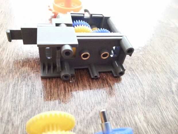 Siga las instrucciones proporcionadas en el cuadro. La caja de cambios parece intimidante y las piezas pequeñas son difíciles de mantener, pero no es tan complicado como parece. Asegúrese de slick los engranajes con la grasa para reducir la fricción.
