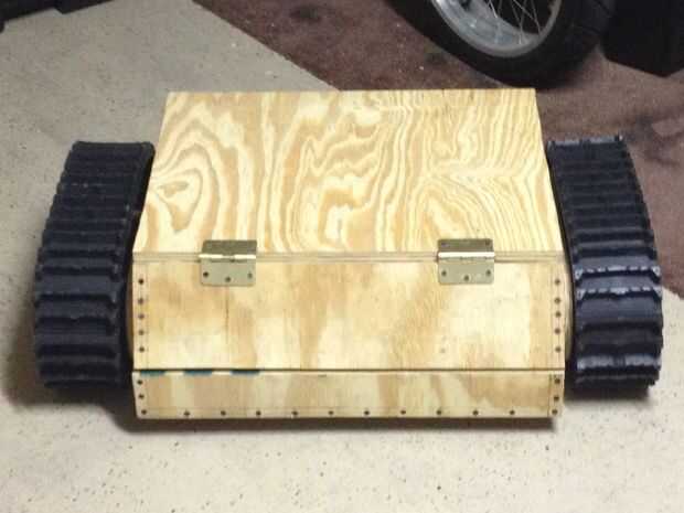 Disfrutar la construcción detallados dispositivos mecánicos, pero no tienen acceso a una tienda de máquina o herramientas del tipo de máquina. Por lo tanto, yo quería diseñar y construir un robot resistente que puede crear en su garaje sin un torno, máquina o máquina que muele. Este Instructable le mostrará cómo se ensambla el bot de la pista. Se trata de la planta de energía para varios césped y jardín cuidado robots que planea construir. Esta es la compilación de la versión de "BATA" para el robot, por lo tanto, el chasis está fabricado de madera contrachapada de 3/4". Versión posterior se construirá de materiales duraderos. Gracias por mirar!