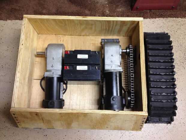 Con el motor montado en el piso de robot, instale el piñón del motor y apriete. Ahora, corte la cadena a la longitud e instalar el enlace principal. Instale la cadena sobre los piñones y ajuste la base para eliminar cualquier holgura de la cadena del motor.