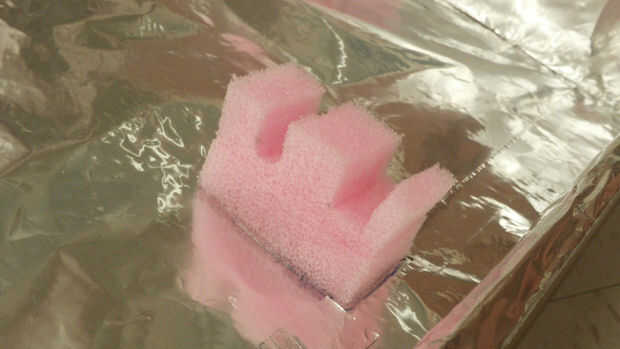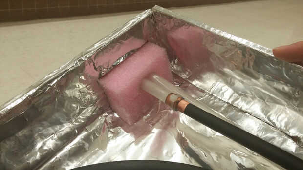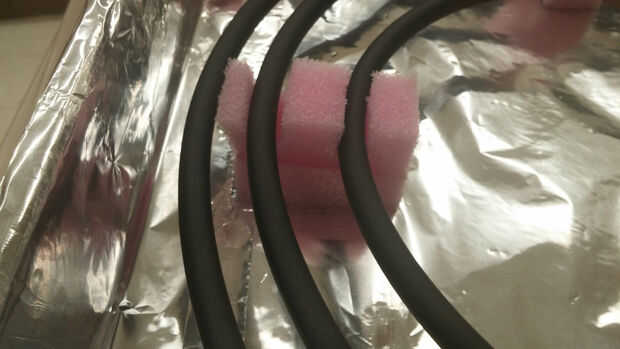 - Marcar y cortar ranuras en la espuma para adaptarse a la tubería como se muestra.