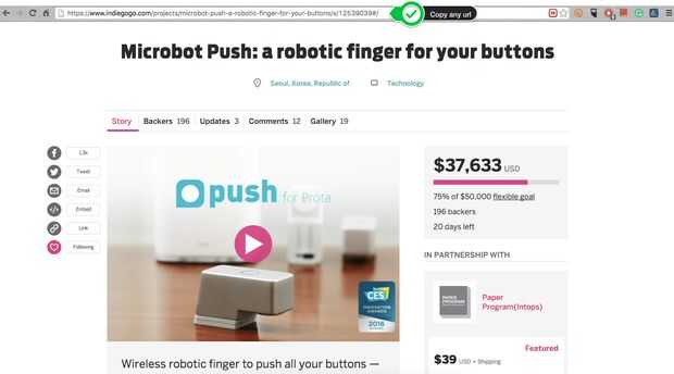 Paso 2: Copiar cualquier enlace de campaña Indiegogo