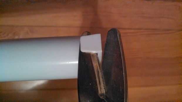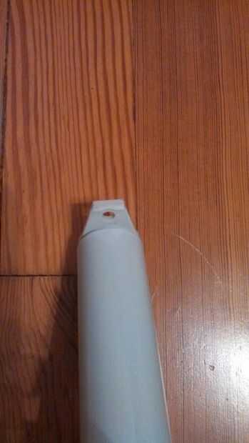 Ahora echar un vistazo en la barra. Tuve suerte de encontrar uno que se supone que Monte en cada lado para una viga de pared o lo de madera en cada extremo de la tapa extendida en la barra y tenía un agujero para un tornillo de ojo. Todo lo que tenía que hacer era recortar un reborde de la tapa para permitir que la cadena tener acceso al agujero, puede usar la sierra, herramienta rotatoria o esquileos para este paso (ver imagen).