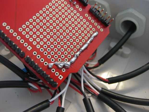 Porque estas sondas de temperatura de trabajo en el sistema digital, un cable bus (donde cada sondeo tiene una dirección única), todos los cables de señal atados y trajo a un solo pin digital de Arduino. Opté por usar el pin 3.