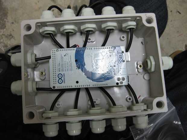 Como mencioné antes, a ver en la foto un Arduino Mega, pero esta fue innecesariamente potente para esta aplicación. De hecho, un chip de potencia más baja sería probablemente superior. Si usted termina la conexión de sensores más, sin embargo, un Mega podría ser útil.