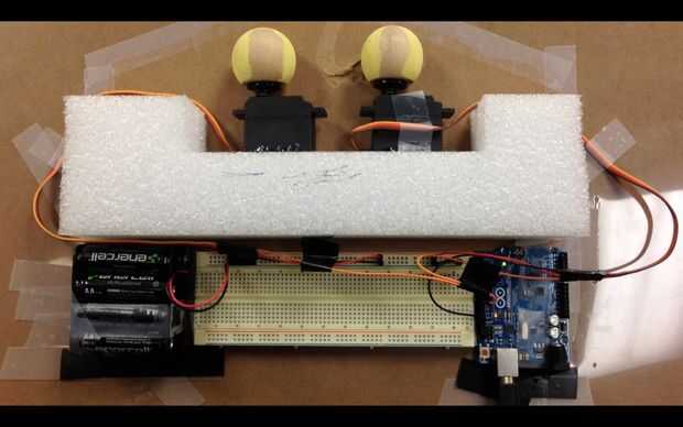 Ahora para la diversión parte! Ya que necesitamos alimentar dos servos al mismo tiempo, no podemos confiar en el poder desde un Arduino solo. Una fuente de alimentación externa es necesaria para los motores. Cada servo está preparada para trabajar a 4.8V - 6V. Por lo tanto, una fuente de alimentación de 12V (una batería de 8 AA funciona bien) para los motores debe ser fineza. Si los motores fueran controlado uno a la vez, fácilmente puede realizar tanto en el Arduino.