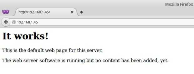Después de la instalación, Compruebe la instalación de Apache escribiendo la dirección IP de Intel Edison en un navegador web conectado a la misma red (obtener su dirección IP, escribir el comando sudo ifconfig en ubilinux). Usted verá la página por defecto de Apache (funciona!)