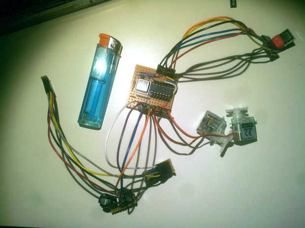 Este es un proyecto de aprendizaje buena divertida para construir - tengo mucho de lo que es. Creo que esto se ha hecho absolutamente un poco ya, pero no encontré una forma sencilla de hacerlo con fotos. Cuando finalmente lo conseguí trabajando, pensé que sería compartirlo. Podría ser útil para alguien que quiere aprender o aplicar I2C, interrupciones y las devoluciones de llamada, PWM o Servo Control.