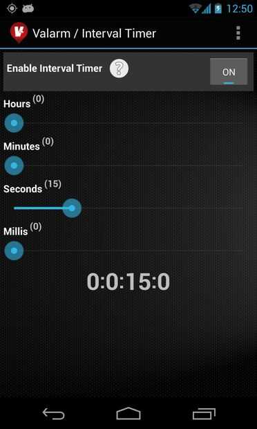 En este caso de ejemplo utilizará el temporizador interválico para Valarm Informe estado cada 15 segundos.  Encienda el temporizador de intervalo en la configuración del temporizador de intervalos y establecer su intervalo deseado basado en cuánto desea obtener actualizaciones de Valarm.