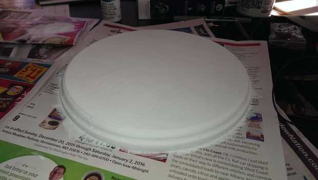Si su teléfono no cubre toda la base, pintar el reloj base para protegerla y permitir que el selector de mezcla. Elegí el blanco porque es el color de fondo de la cara que he diseñado. Use varias capas si es necesario cubrir la madera desnuda.