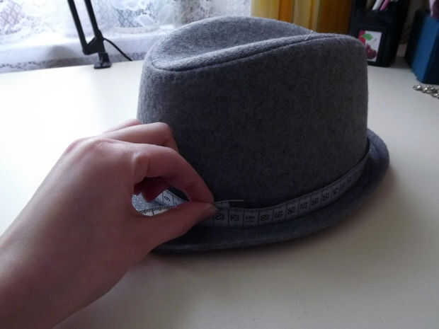 Medir el perímetro de tu sombrero donde será la cinta. Añadir a esta medida 1,5 - 2 cm para costuras.