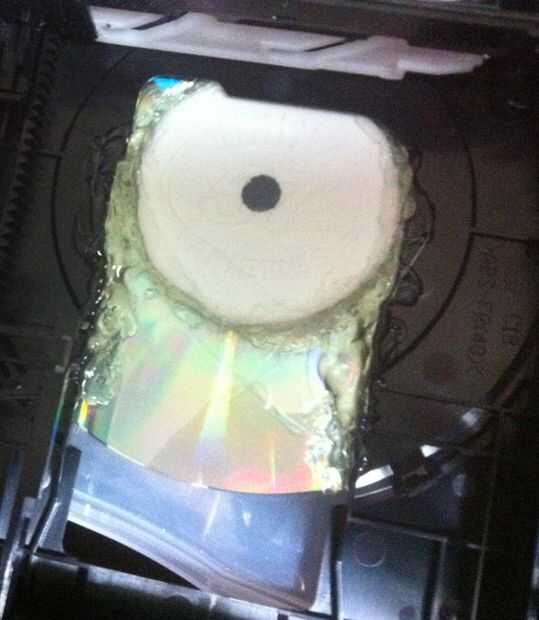 Coloque la cara del CD en la sección de la bandeja la mitad del casco de la unidad de disco. Pegue la nueva cara a la bandeja de la parte trasera. Vuelva a ensamblar la unidad mech y manos.