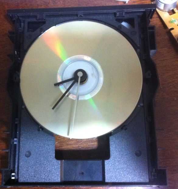 Con la cara montada Fije la mitad metal de la caja de la unidad de disco a la bandeja de media. Esto incluye la unidad de reloj y limpiar muy bien la unidad. DONE y no tienes que pagar $80 por un elegante reloj de unidad de CD y mantiene algunas cosas útiles fuera del vertedero.