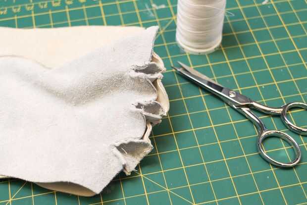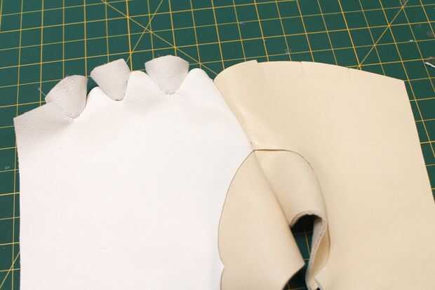 -Coser, en el final del corte y hacia arriba otra vez. Comienzan y terminan 1/16 de pulgada del extremo del cuero haciendo una puntada doble. Esta manera, si usted necesita cortar para igualar los bordes superiores, usted no corte el hilo demasiado.