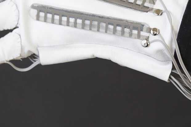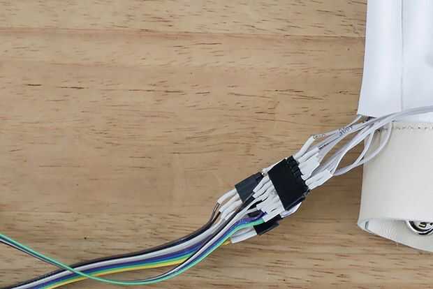 -Hay dos cables que salen de la punta de cada dedo, este número puede reducirse haciendo un terreno común. Cortar y soldar entre sí cuatro alambres, cada uno de los cuatro dedos, añadiendo un quinto para extender hasta la muñeca. Hacer esta conexión en un lugar que se oculta una vez que los cables a través del canal.