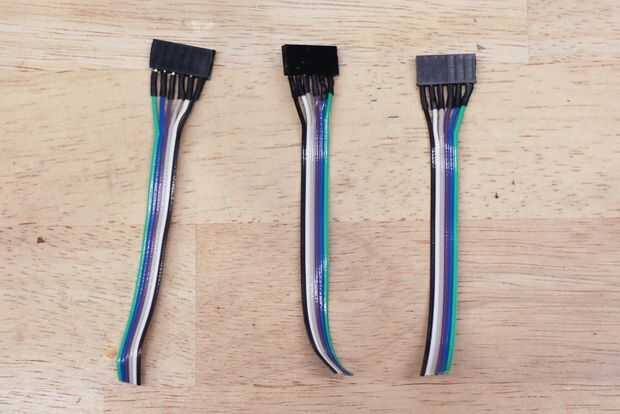 -Cortadas dos tramos de cinta de alambre el tiempo suficiente para ir desde el guante para el microcontrolador, uno de 7 conductores, con 8.