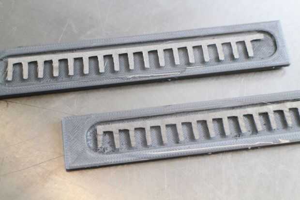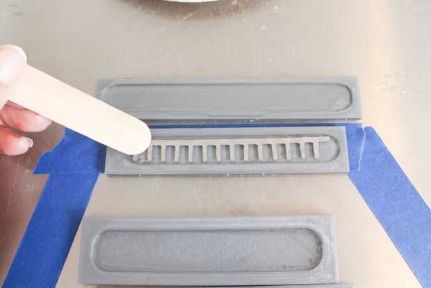 -Coloque las escaleras corte tela conductora sobre el poliuretano en el medio de los moldes del sensor.