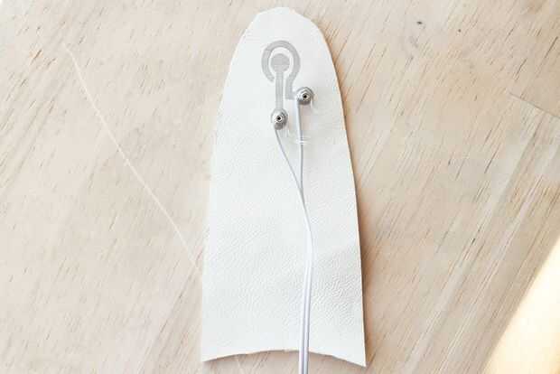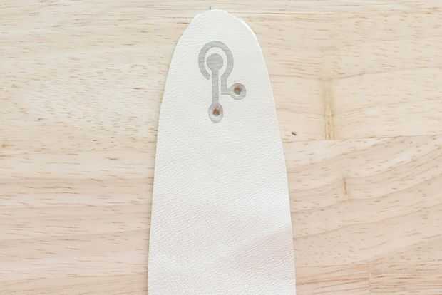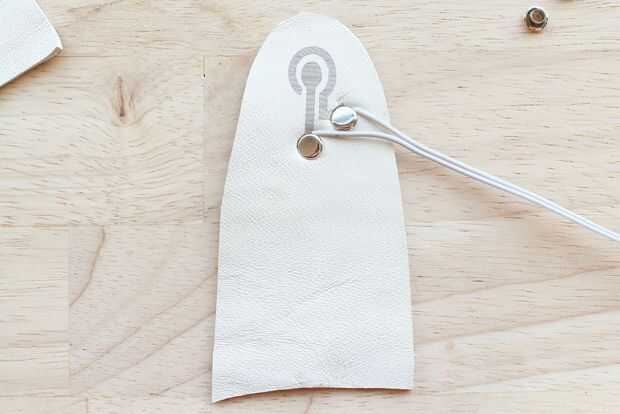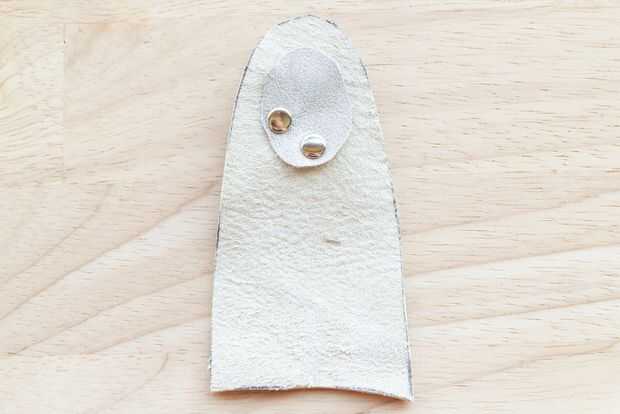 -Cortar otro pedazo de cuero para poner detrás de la punta de los dedos para que el remache se ajusta perfectamente al martillado. Empuje el poste a través de cada agujero.