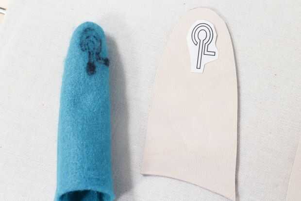 -Plancha al tejido conductivo en las puntas de los dedos de todas las piezas de la dorsal del dedo. Asegúrese de que no toque los dos trozos, uno va conectado a tierra, el otro poder, si tocan crear un corto circuito.