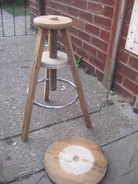 He rescatado un viejo taburete de artista desde el sitio de relleno sanitario local, sentí que era demasiado que mucho de un residuo demasiado dejarlo pudrirse lejos.