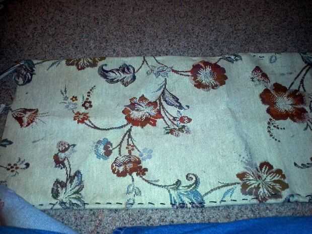 Enrollado en el borde largo del material y doblar el borde sobre. Ahora toma unas pinzas y perno de la solapa para presionada mientras cose.