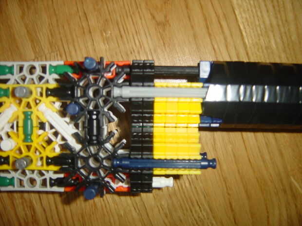 esto es una espada fría prety. Tiene una maza en la punta!Paso 1: piezas Aquí están las piezasEngranajes -9 (pequeña)Grandes colgajos-2Barras-4 amarilloConectores-8 naranjaBarras-10 verdeConectores verde-4Conectores-6 amarilloTan clips-7Espaciadores