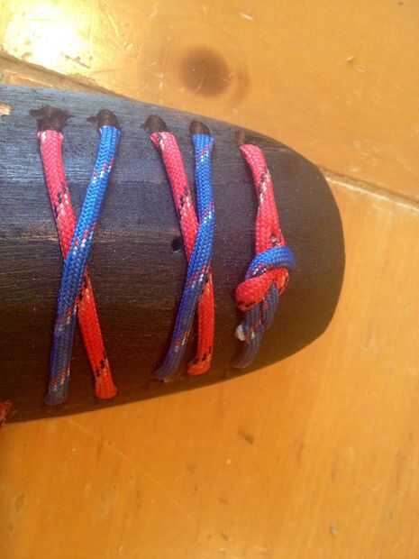 1. Comience por cortar longitudes iguales de los dos colores diferentes de cuerda de paracaídas que tienes.