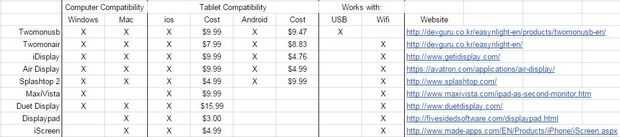 Hice un poco de googlear para encontrar posibles aplicaciones para mi configuración de tablet de pantalla extendida y aquí están las aplicaciones que he encontrado: