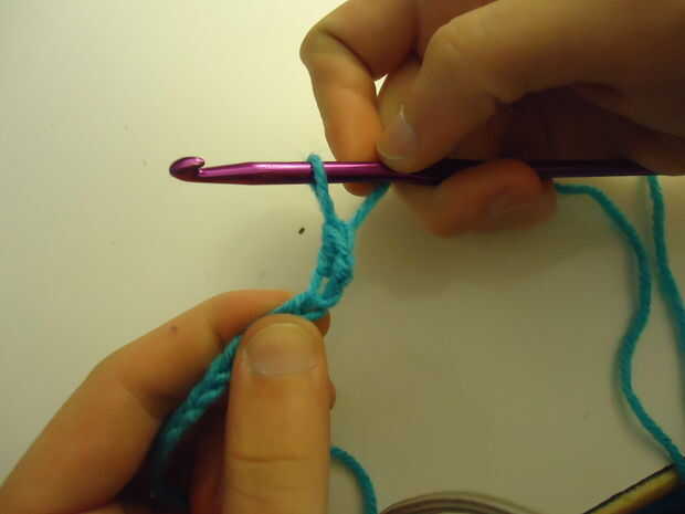 Por último, repita el paso 6 una vez más por lo que sólo un bucle más en el gancho. Había acabado doble ganchillo puntada! Usted debe ser capaz de ver la "v" encima de la puntada.