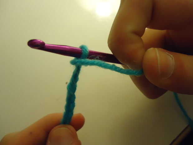 Envuelva el hilo alrededor del gancho de la derecha a la izquierda va en el gancho y la cadena.
