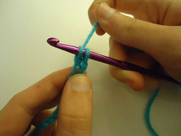 Envolver hilo como antes, esta vez tire de ella a través de la primera lazada y la segunda pieza de hilo envuelta en el gancho. Ahora habrá dos lazos en el gancho.