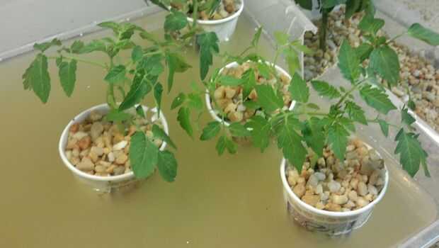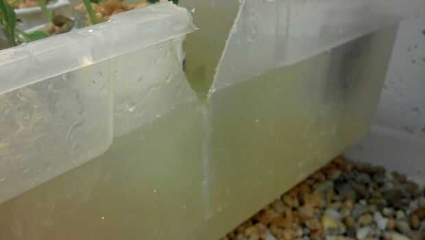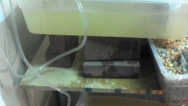 15/06/12 - es morir una planta, replantado en la cama superior crece y parece que se va a volver. Las plantas muestran signos de riego por lo que he disminuido el agua para inundar las camas 4 veces al día. Yo estoy midiendo 1/2 pulgada de crecimiento en más todas las plantas. He añadido algunas plantas de albahaca a la mezcla para ver cómo lo hacen. El agua es mucho más claro hoy como ha asentado el sedimento.