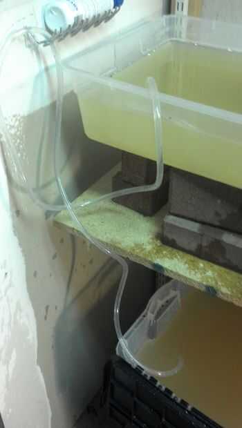 He añadido un tanque de peces mucho más grande que podría utilizar peces más grandes (o más). Me quedé con la misma bomba pero puse en una conexión mejor que más me permite controlar fácilmente el flujo de agua.