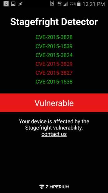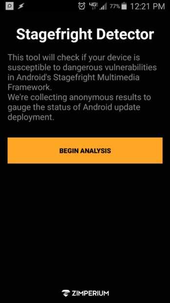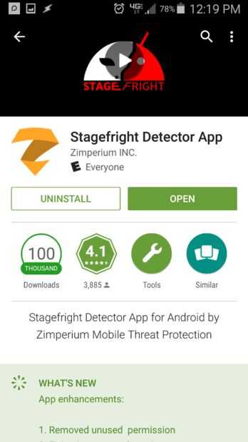Por lo tanto, vamos a ver si nos vemos en la actualidad necesita un parche para este problema. Siga este enlace a la Play Store de Google. Esta es una pequeña aplicación que será la punta de prueba para todas las vulnerabilidades Stagefright. Si encuentra cualquier archivo sin parches en el sistema le informará que usted es vulnerable. Si eres absolutamente limpio, con seguridad puede detener lectura este instructable!