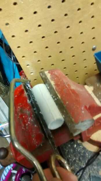 Quería encontrar una montura que podría unir a mi pod de gorrilla, así que me puse una tuerca que era del tamaño adecuado. Entonces consiguió una pequeña longitud de tubo de pvc y cortarlo longitudinalmente dos veces (ver fotos), por lo que mi ipod podría encajar en el medio. Luego perforar un agujero en la parte inferior de la tubería y había ahuecado hacia fuera usando una herramienta de talla de madera. Luego, pegué la tuerca en el tubo. Luego añadí alguna cinta a la tubería de añadirle algún relleno.