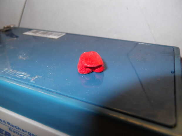 Estábamos un poco impacientes así que eliminado el primero de ellos demasiado pronto y no salgan limpiamente. El segundo dejó en el garaje por un par de días y se olvidó. Era apretado en, pero salió razonablemente limpio. Limpieza rápida de Sugru el terminal y ya tienes un casquillo terminal agradable para poner en la batería.