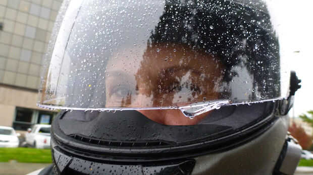 En lugar de conducir en un coche, todo lo que obtiene llovió en permanecerá llovido sobre. Hay no hay limpiaparabrisas para ayudarle y su primera obstrucción será en su visera, pulgadas de su cara, cuando se obtiene cubierto de gotitas.