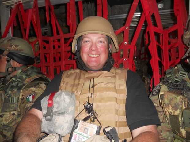 En uno de los cuadros me veas con armadura y un casco. Esto es porque yo estaba volando en un vuelo militar y tomar fuego en zonas de guerra, a pesar de los esfuerzos de los militares, cuando despegaban y aterrizaban.